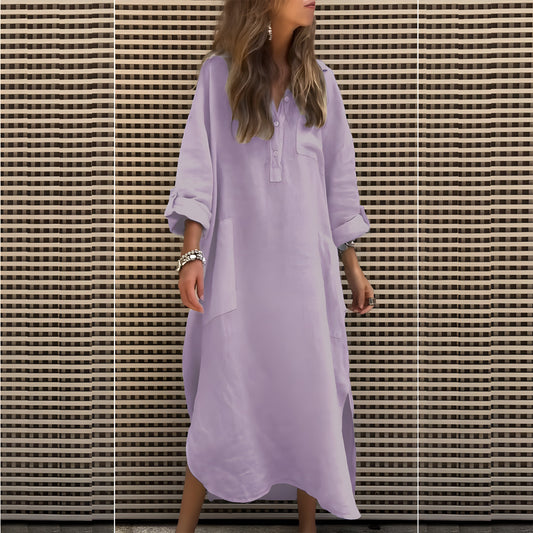 Klara™ | Effen Langer Jurk met Lange Mouwen