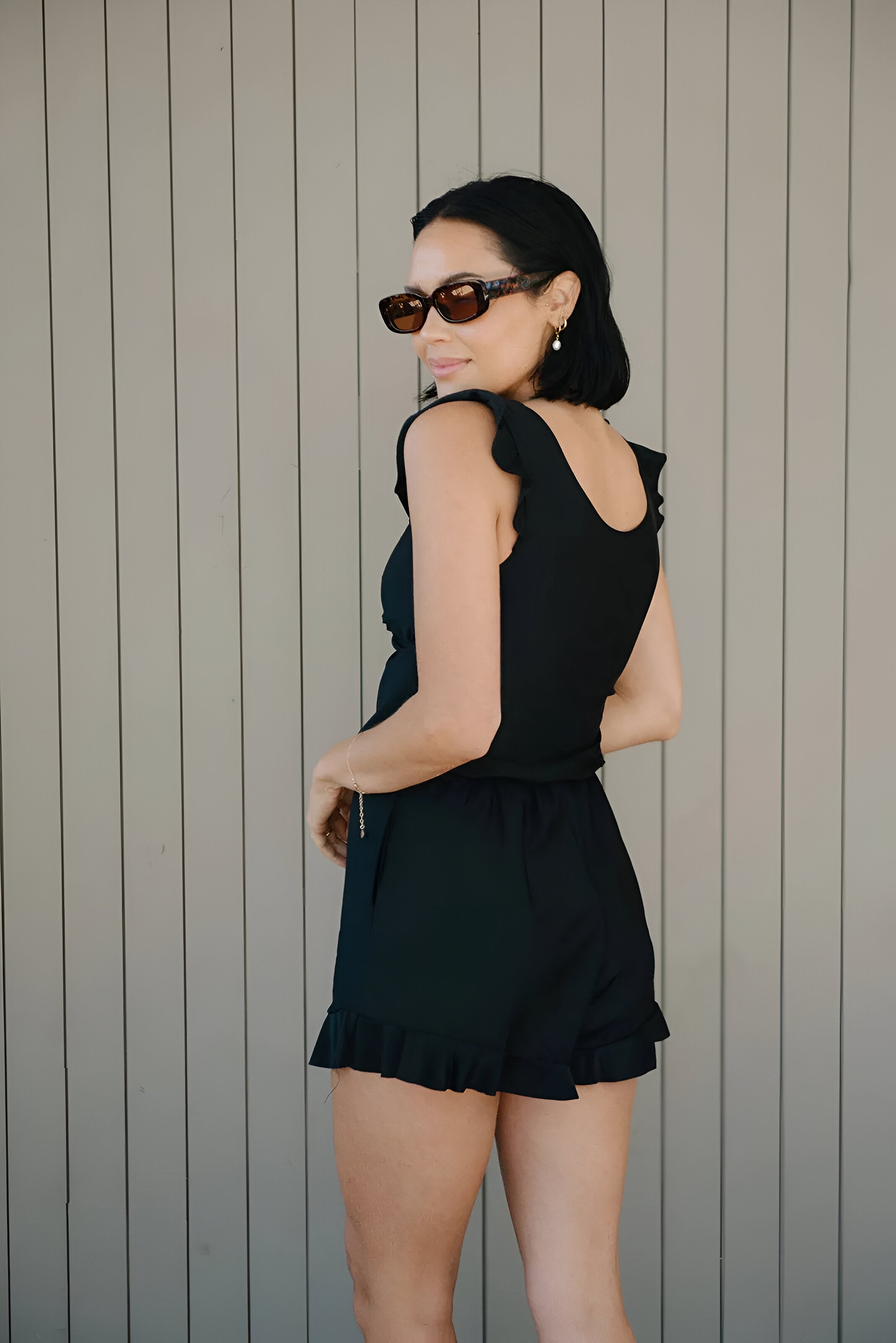 ✔️ Voel je mooi, verstop je niet - De gekruiste V-hals, ruffles op de schouders en bijpassende shorts accentueren je sterke punten en camoufleren wat je liever niet laat zien – zonder dat het strak of beklemmend voelt.