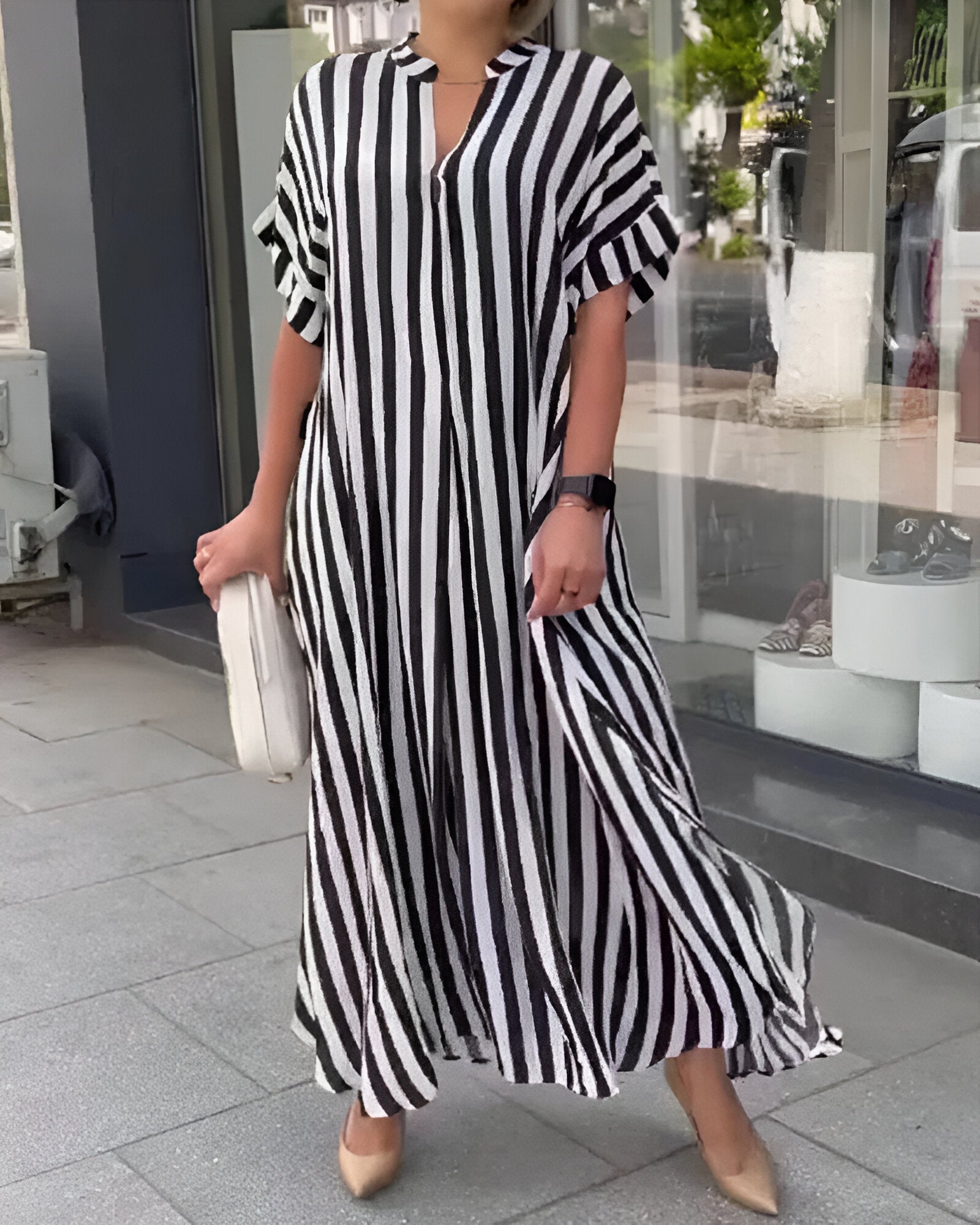 Elena™ | V-hals Gestreepte Overhemdjurk