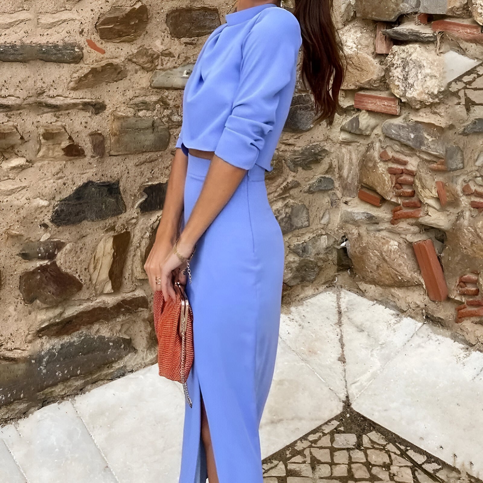 De Elishia™ elegante twee-delige rok set is gemaakt om jouw garderobe een stijlvolle upgrade te geven. Met de onregelmatige top, de hoge taille rok en het vrouwelijke silhouet straalt deze set pure elegantie uit. Perfect voor alle seizoenen, zodat je moeiteloos een chique uitstraling combineert met licht en comfortabel draagplezier.